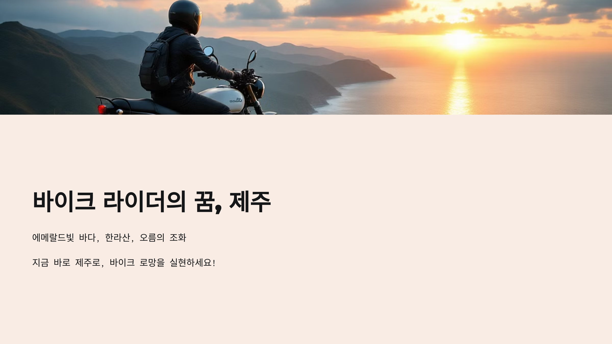 제주 해안도로 일주 코스는 단순한 드라이브를 넘어, 바이크와 함께하는 특별한 예술 작품입니다. 에메랄드빛 바다와 한라산, 오름의 조화로운 풍경, 그리고 제주 특유의 여유로운 분위기는 라이더의 가슴속에 오래도록 기억될 아름다운 추억을 선사할 것입니다. 지금 바로 제주로 떠나, 당신의 바이크 로망을 실현해 보세요!