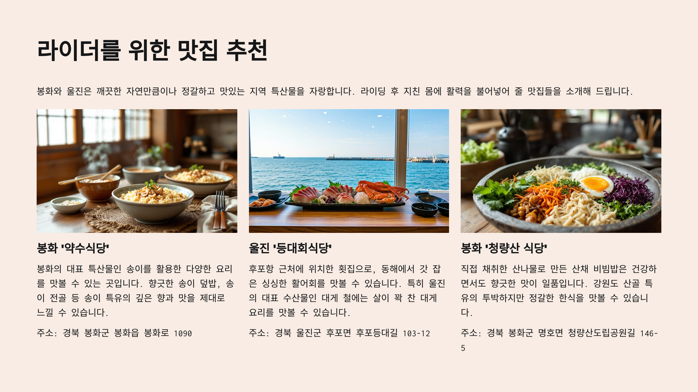 봉화-울진 미식 로드, 라이더를 위한 맛집 추천!