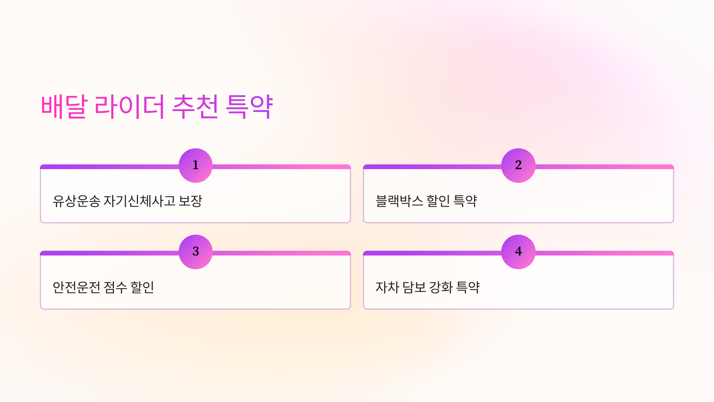 • 자차 담보 강화 특약 (배달 사고 빈도 반영)