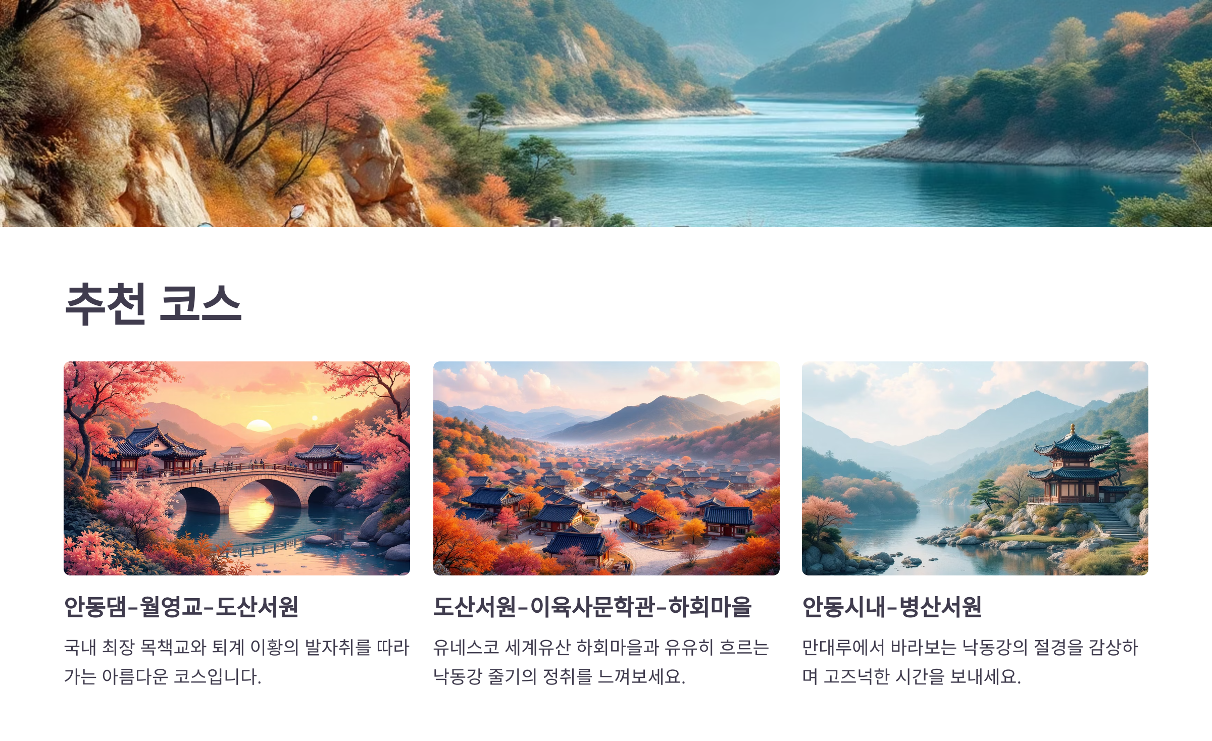안동 호반도로는 안동의 자연과 유교 문화를 동시에 즐기기에 좋은 코스입니다.