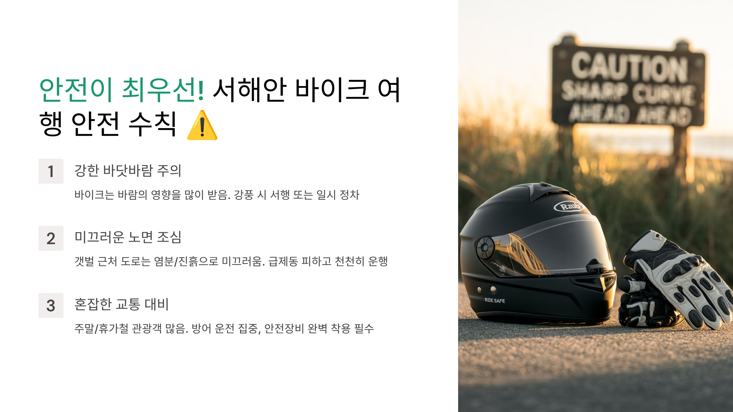 안전이 최우선! 서해안 바이크 여행 안전 수칙 ⚠️