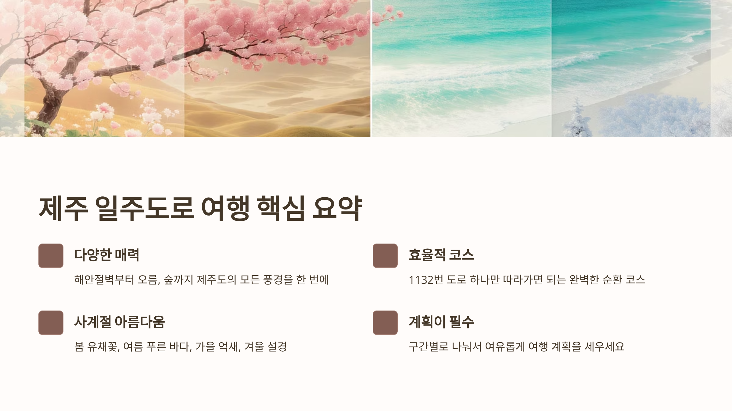 제주 일주도로 여행을 계획하는 여러분을 위해 꼭 기억해야 할 핵심 포인트를 다시 한번 정리해봤어요.