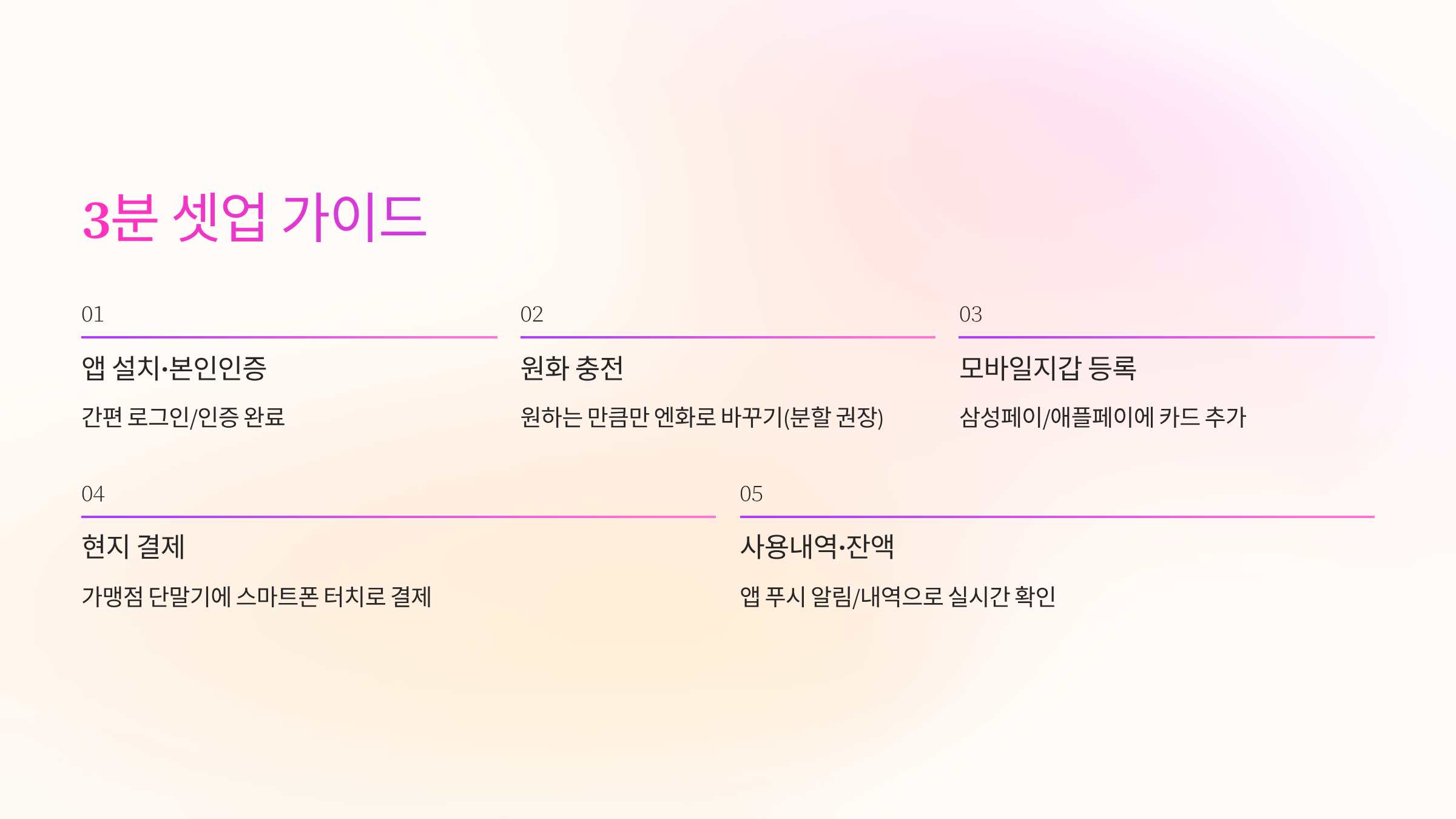 - 사용내역·잔액 → 앱 푸시 알림/내역으로 실시간 확인