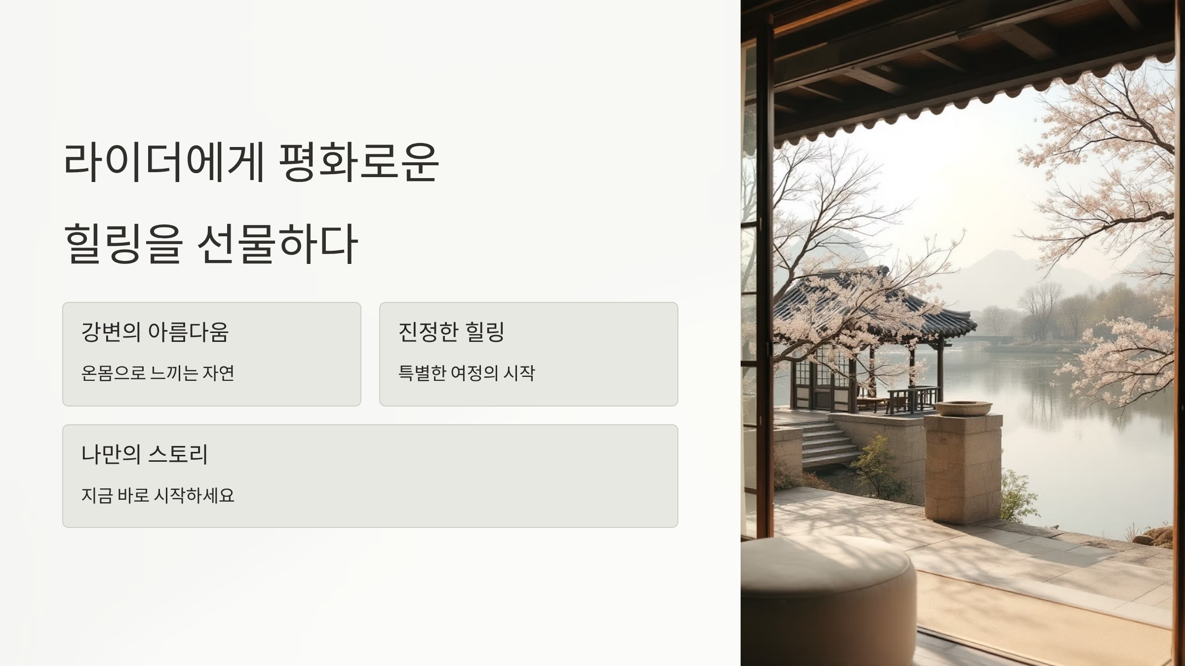 지금 바로 이 특별한 코스 위에서 당신만의 힐링 스토리를 시작해 보세요!